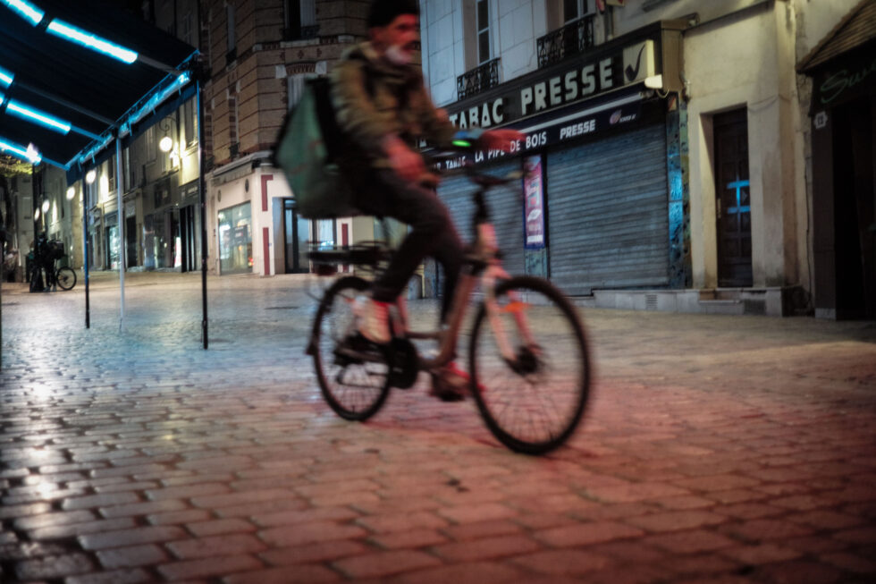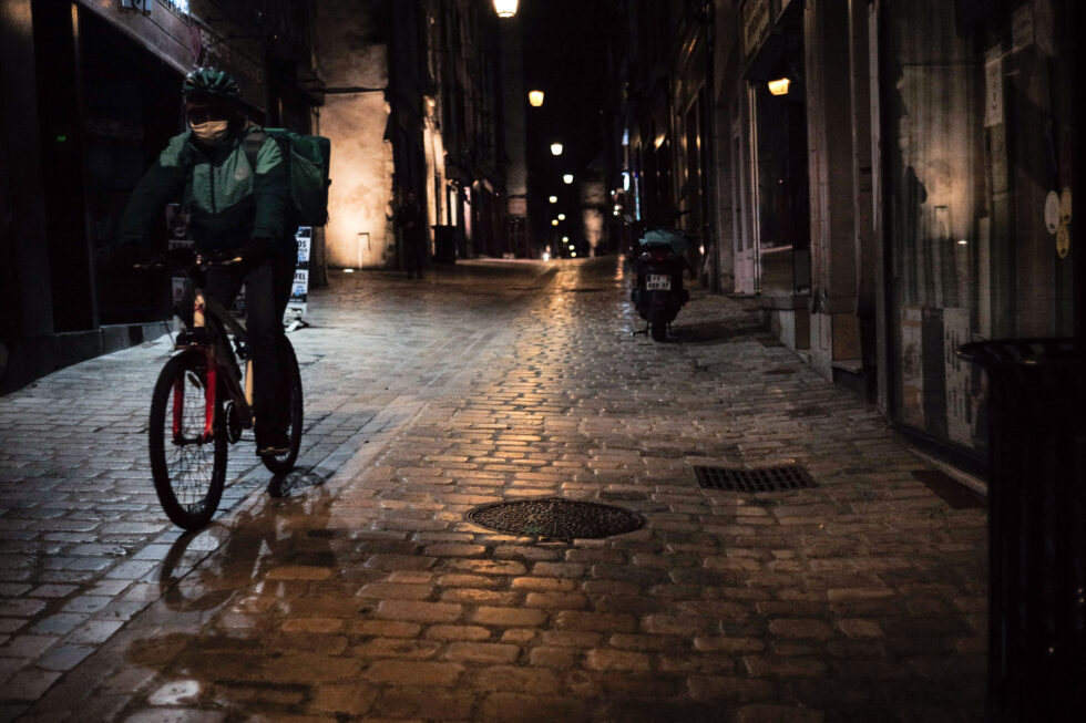 On les croise tous les jours, que ce soit sur leur vélo, leur trottinette ou un scooter. Discrets la journée, et pourtant tellement présents dans notre nouveau décor, à la nuit tombée à 19h, la ville leur appartient.