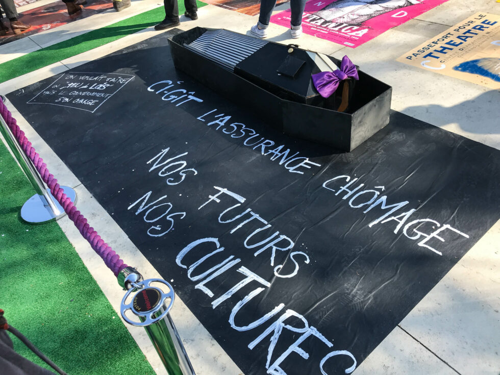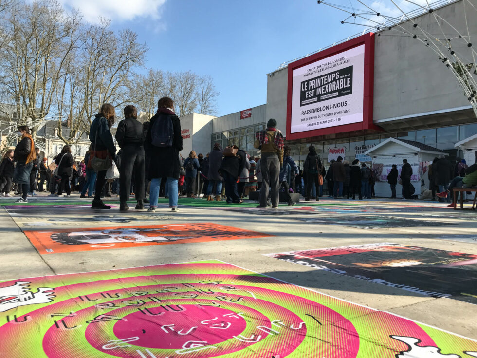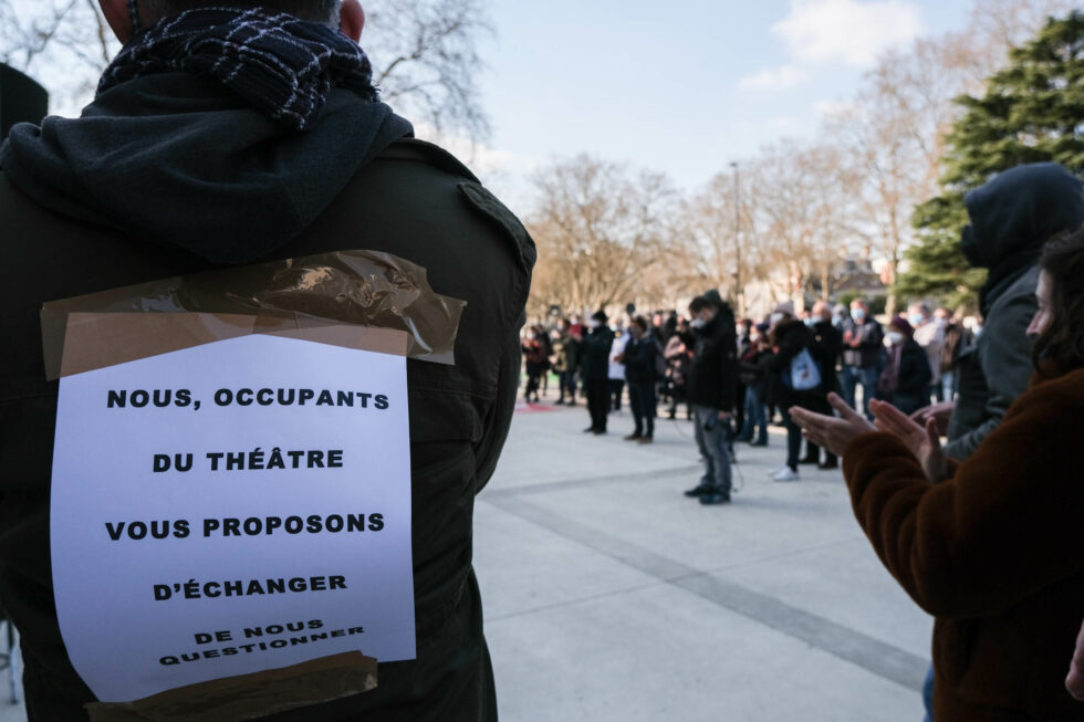 Occupation du théâtre par le CUIP45 mars 2021. Revendications du milieu culturel Orléanais pour le retrait de la réforme de l’assurance chomage.